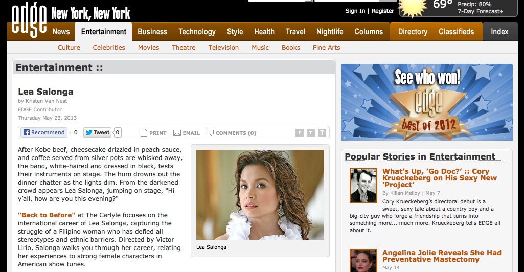 “Back to Before” at The Carlyle focuses on the international career of Lea Salonga, capturing the struggle of a Filipino woman who has defied all stereotypes and ethnic barriers. Directed by Victor Lirio, Salonga walks you through her career, relating her experiences to strong female characters in American show tunes.